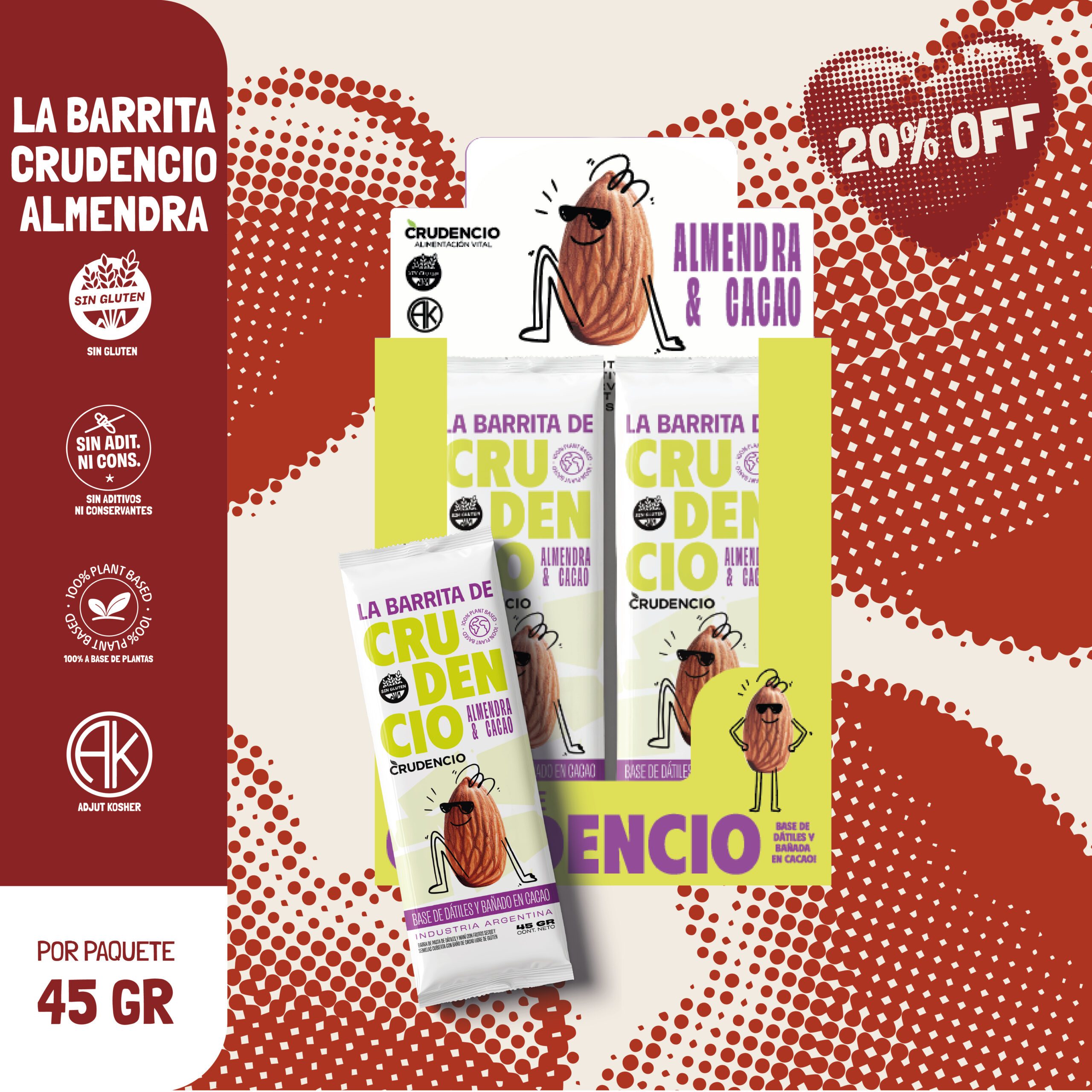 Nuestra barrita de almendra combina dátiles naturales con un baño de cacao intenso, logrando un equilibrio perfecto entre dulzura, cremosidad y textura.