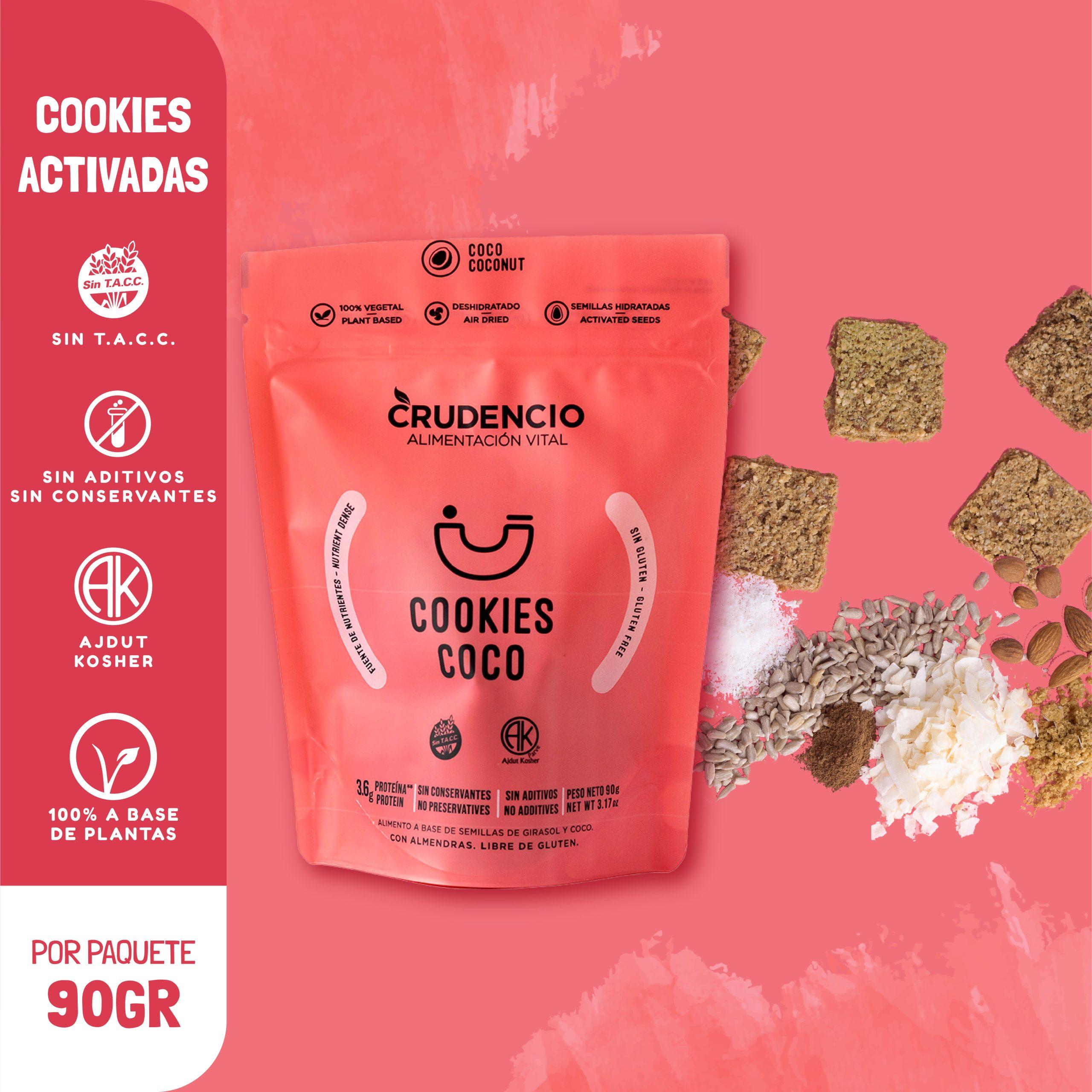 Cookies dulces hechas a base de almendras y semillas de girasol activadas. Endulzadas con mascabo.