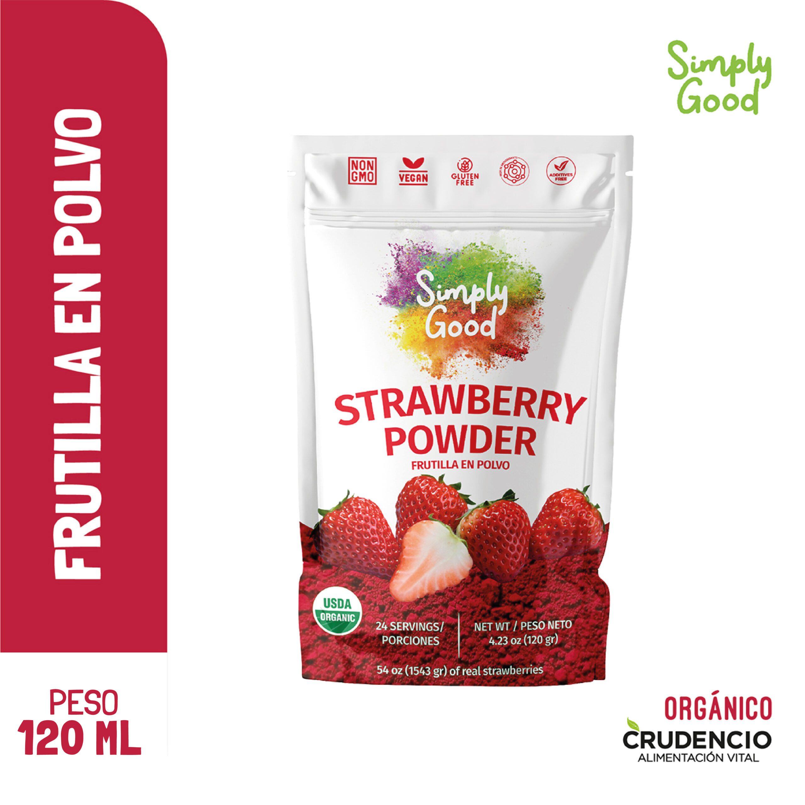 Polvos de frutas y verduras orgánicos. En 120 gramos, cada uno ofrece la posibilidad de incorporar la misma cantidad de nutrientes que aporta 1.2 kg de producto fresco.
