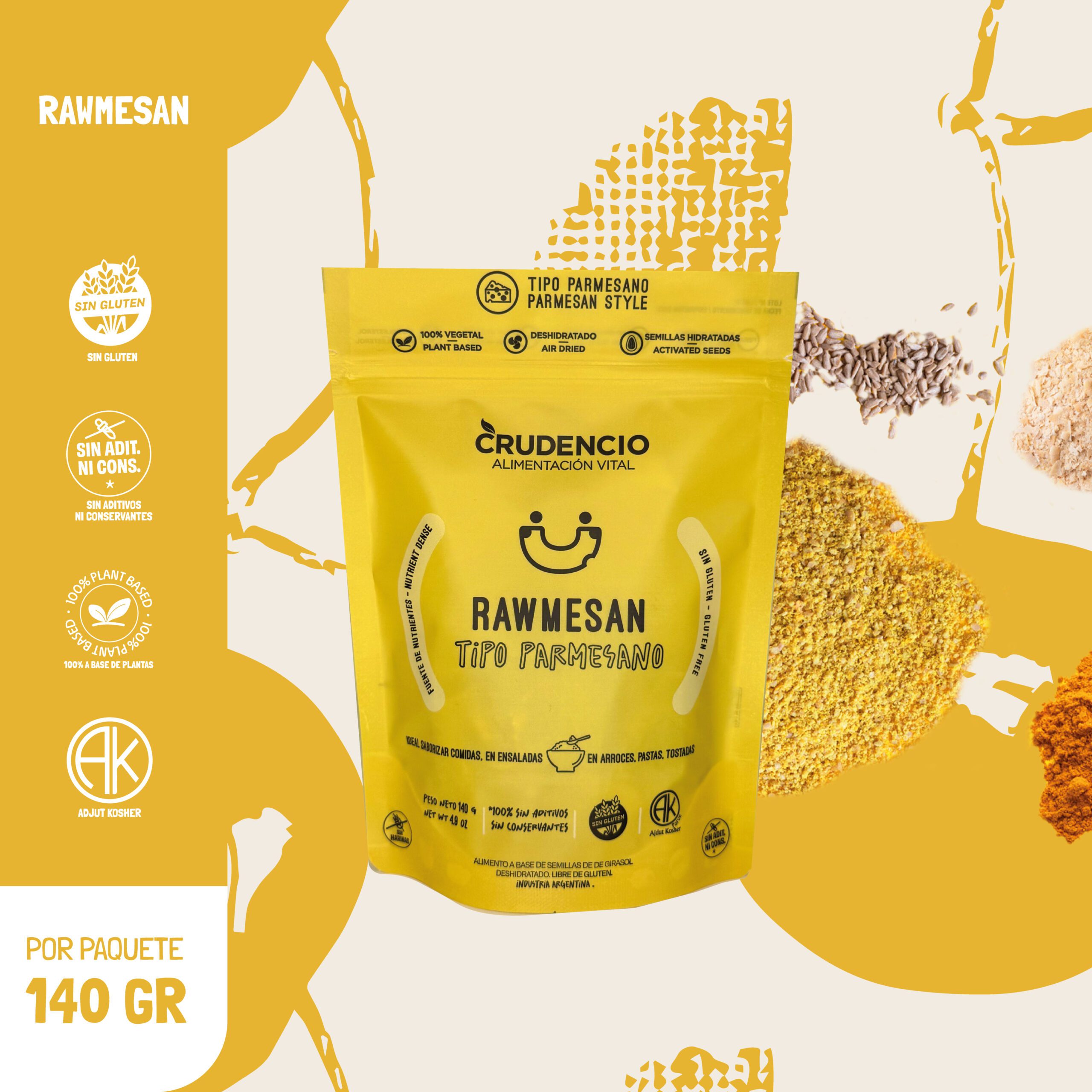La gran diferencia de este Rawmesan es su proceso: las semillas se lavan y activan, y luego se deshidratan a muy bajas temperaturas. De esta forma, las vitaminas quedan más biodisponibles, logrando un producto vivo, nutritivo y lleno de sabor real.