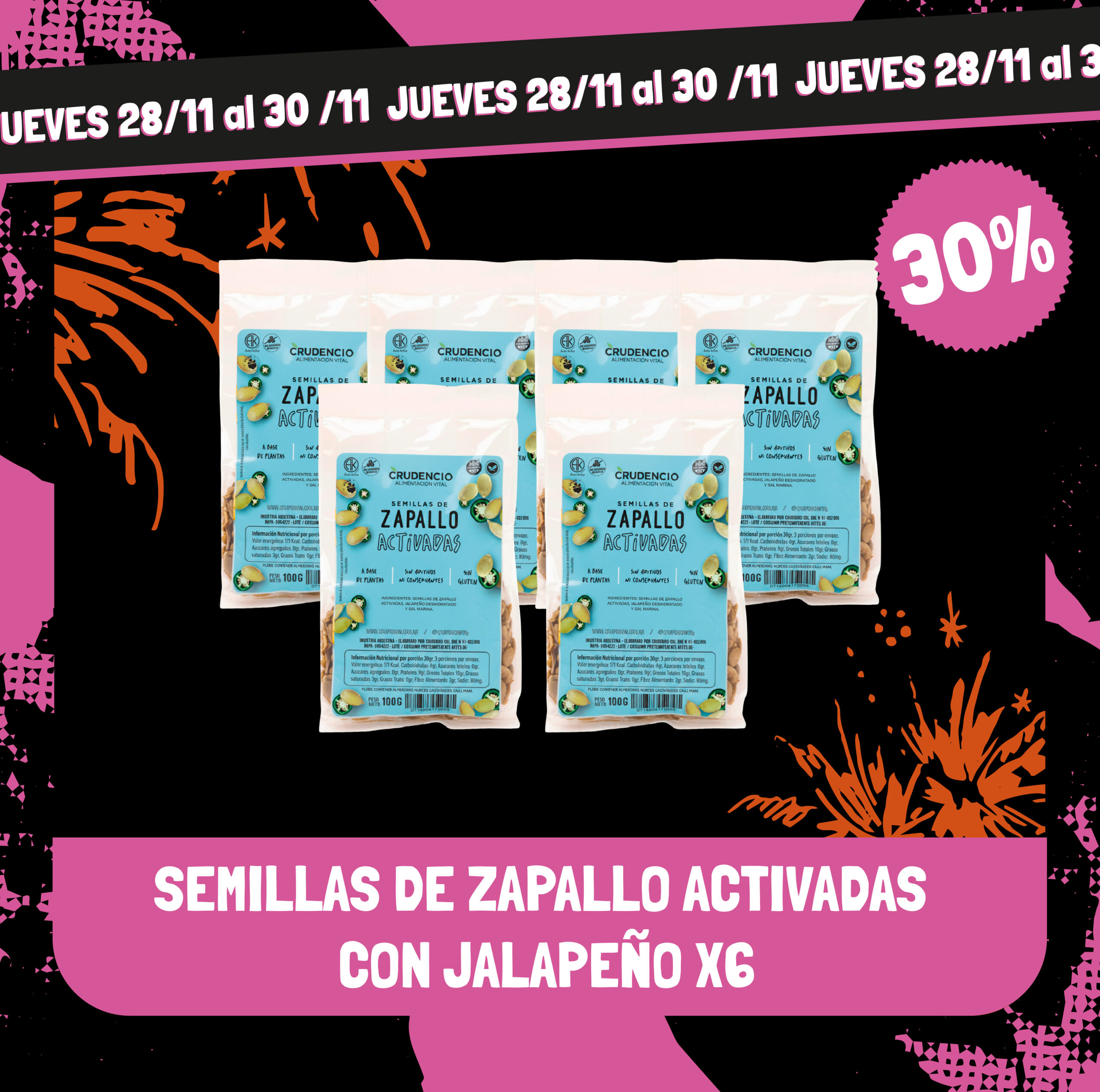 / Semillas De Zapallo Activadas Con Jalapeño X6
